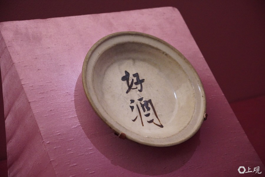 春节期间,少不了酒文化。书有“好酒”字样的白釉盘,想必会成为下一个“网红”文物。此盘为磁州窑系作品,磁州窑产自河北,是北方最大的地方民窑。最常见的磁州窑系装饰风格为白地黑花、黑底白花等。此盘白底,上书“好酒”字样,胎质略粗,施化妆土,书法风格洒脱,是典型的民窑作品,具有北方民间瓷器艺术粗犷率真的气质。