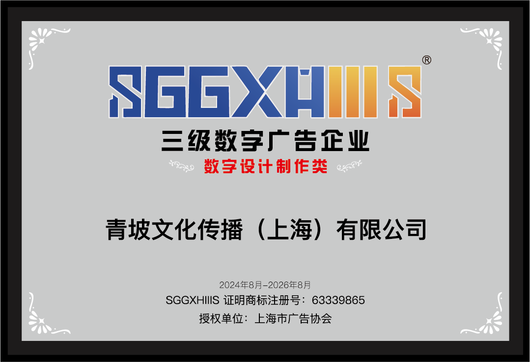 上海市广告协会数字广告证明商标(“SGGXHⅠS”“SGGXHⅡS”“SGGXHⅢS”)是经国家知识产权局核准注册的,用于证明特定广告企业数字化转型能力的证明商标,含有数字内容的证明商标具有行业唯一性。它是上海建设数字广告之都的重要抓手,是奠定未来上海在中国广告业乃至全球广告业中地位的重要内容,它的授权使用能充分提高企业自身能级建设,助推企业向行业头部看齐,是上海市广告业数字化转型的先行先试排头兵。它的授权使用具有重要意义:一是行业优质企业身份的认定;二是数字广告标准体系实施的服务保障;三是为行业发展树立标杆榜样;四是为深化扶持政策落实加持,实现广告企业效能的增长;五是有利于提升广告企业的自身品牌价值;六是为促进行业高质量发展发挥重要作用。同时,数字广告证明商标在今年申请中小企业专精特新认定时享受到政策加持,今后将进一步为数字广告证明商标在政策上赋能,推动数字广告证明商标在企业招投标等事项中起到重要的作用,产生品牌效应。