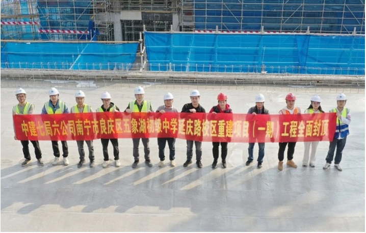 【匠心精筑】-中建七局六公司广西南宁五象湖初级中学项目主体结构全面封顶