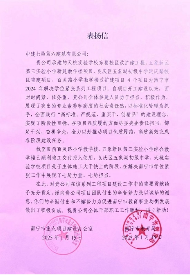 全体施工人员不畏严寒日夜奋战,全力以赴刷新施工进度条,顺利完成主体结构全面封顶节点目标,获得业主单位来信表扬。