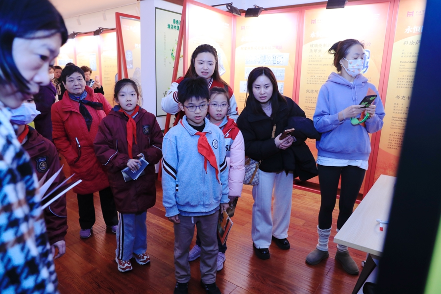 “我最好奇的是三种文字书写的石碑,很想去上海博物馆看到实体的文物。”图文展开幕当天,家住建国西路的位育实验学校初三学生李菲儿特意和姨婆前来看展。她最感兴趣的石碑,是现存极少数的圣书体、世俗体和希腊文三种文字对照的私人石碑和非丧葬用的石碑,记录了帕纳斯之子托勒密向神庙捐献土地的事迹。李菲儿指着展板告诉记者,自己曾在九年级上册的《世界历史》教科书里学习过古埃及历史,“过年后,我计划和家人一起去上博看展”。