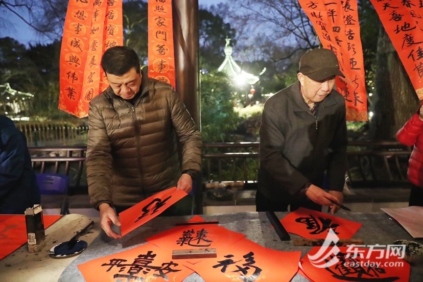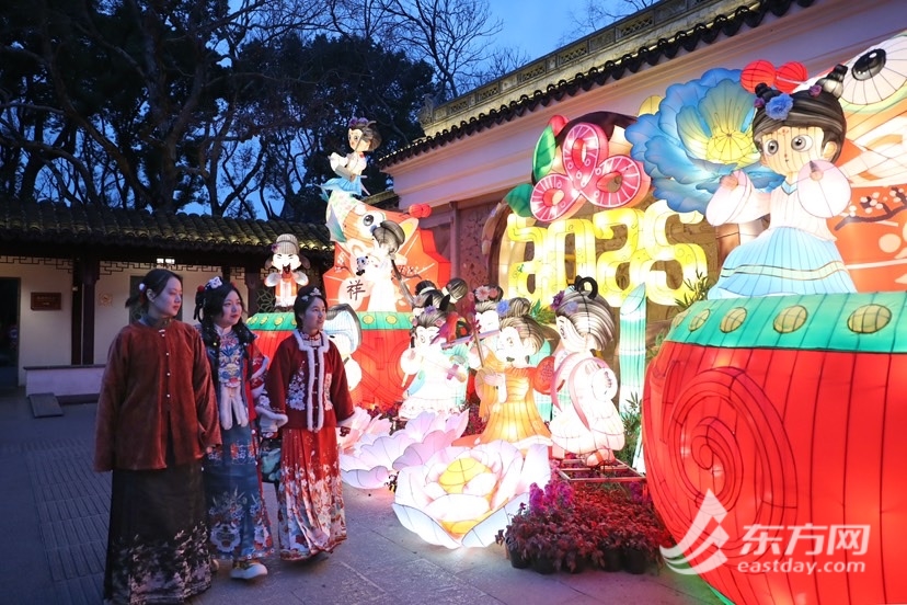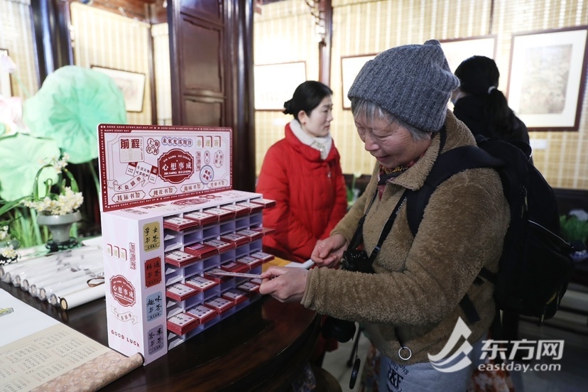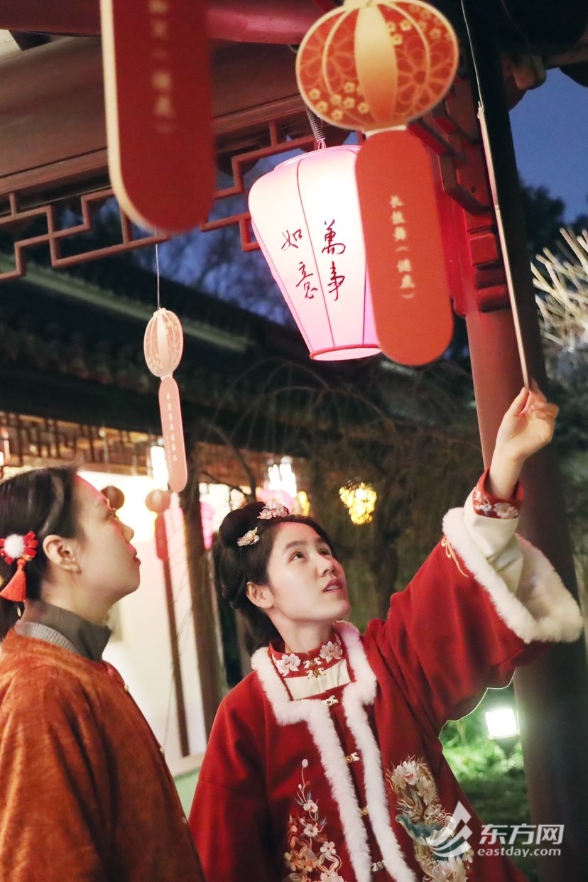 写福字、贴春联是春节不变的温馨记忆,藕香榭长廊,书法爱好者现场挥毫,以十二花神与生肖蛇为灵感,书写祝福满满的春联、福字。梅花碑廊、曲香廊设有灯谜展示,与上海职工灯谜协会合作打造的谜题,藏着无尽智慧,玩石斋庭院的灯谜擂台赛更是高手对决。此外,舞龙舞狮、皮影戏等非遗民俗表演热闹非凡,巨型鱼灯承载心愿,银杏树下红丝带与祈福牌随风摇曳,南门香樟林的“市市如猗”国风市集汇聚非遗好物与民俗表演,让游客感受浓浓年味。
