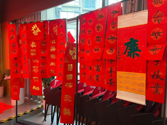 在光新村、农林、香溢花城、宜川三村第二小区、宜川一村第二小区、宜川二村第一小区、大洋新村等多个居民区,以及香溢片区,书法爱好者们早早便备好笔墨纸砚,现场挥毫,为居民们精心书写了一幅幅既寓意吉祥又富含廉洁寓意的春联。这些春联不仅展现了中华书法的独特魅力,更将廉洁文化巧妙融入其中。