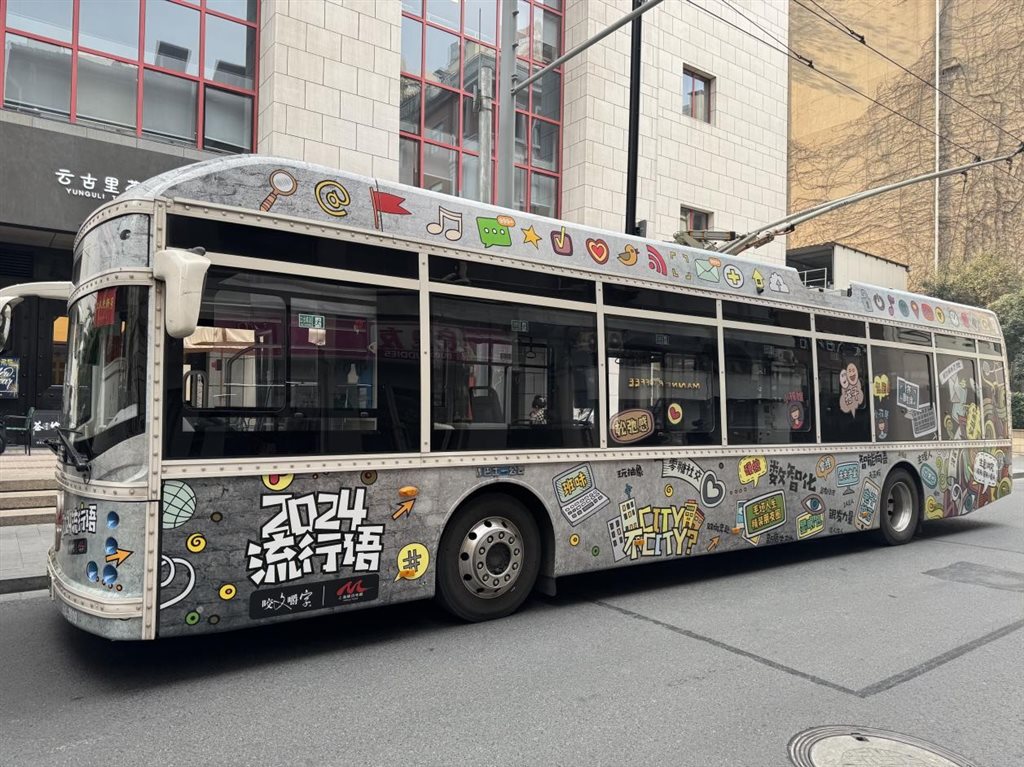 上海公共交通广告有限公司总经理杨小宗介绍,公交车作为城市公共交通的重要组成部分,是市民日常出行的主要方式之一,也是游客对城市第一印象的展示窗口,是天然的“文化驶者”。“以往我们觉得公共交通出行服务是城市基础建设,在上海这座国际化大都市里,高效、有序是交通的第一要素。今年以来,上海移动电视作为媒体提出,要让公交车成为城市的秀场、生活的连接,成为海派城市的流动风景。在这点上,我们公交广告、久事公交集团和移动电视一拍即合。” 就在春节公益宣传车推出的同时,移动电视和“咬文嚼字”一起合作的“年度流行语”20路公交车也驶上街头。“显眼包”“首发经济”“数智化”等充满时代特色的热词期待引发Z时代的共鸣,成为街头年份打卡记忆。