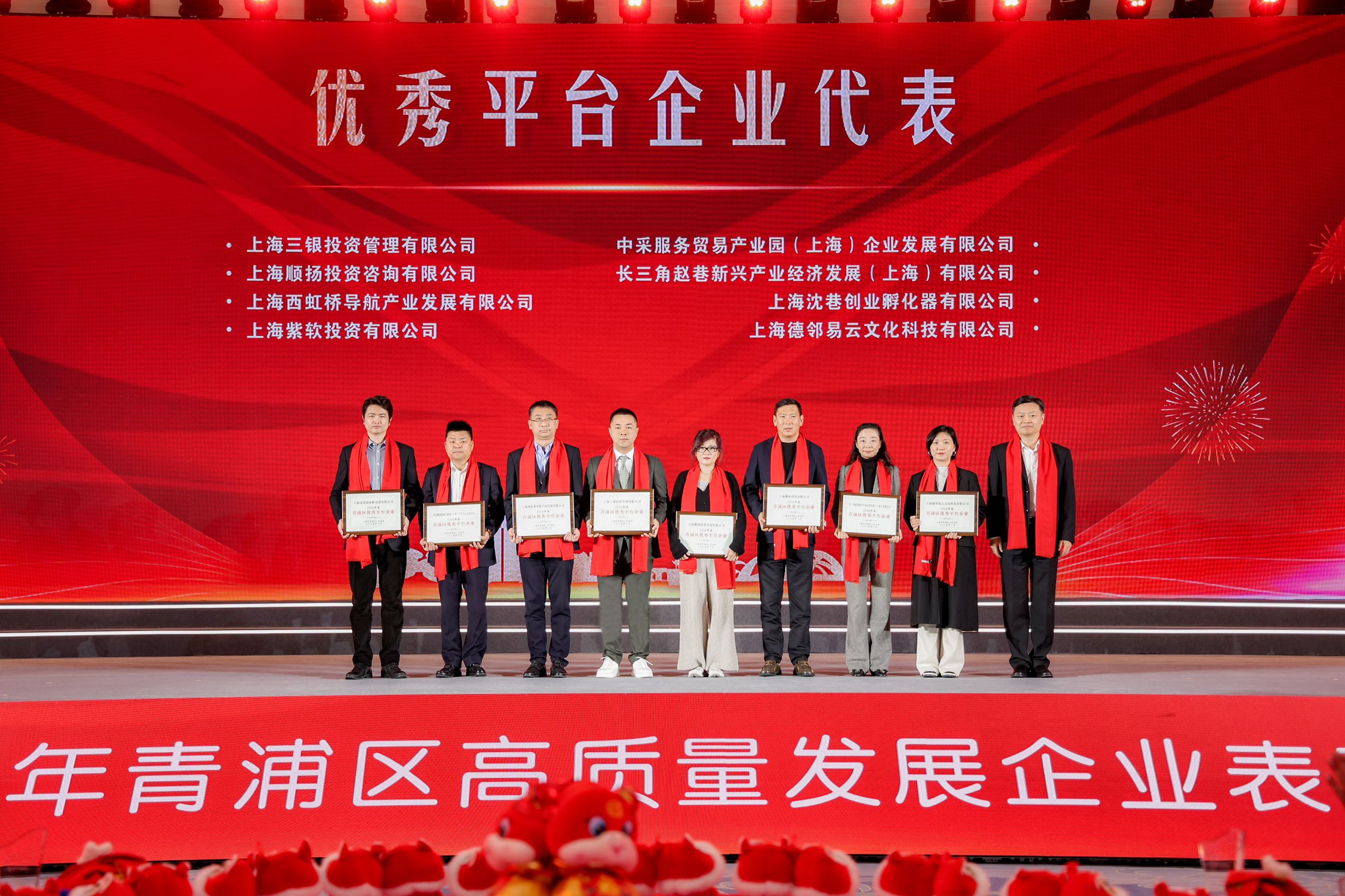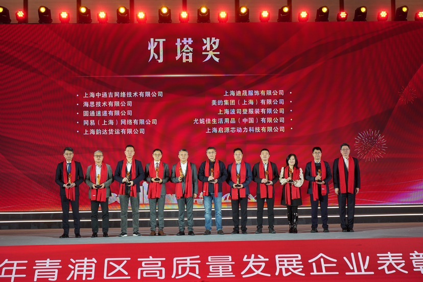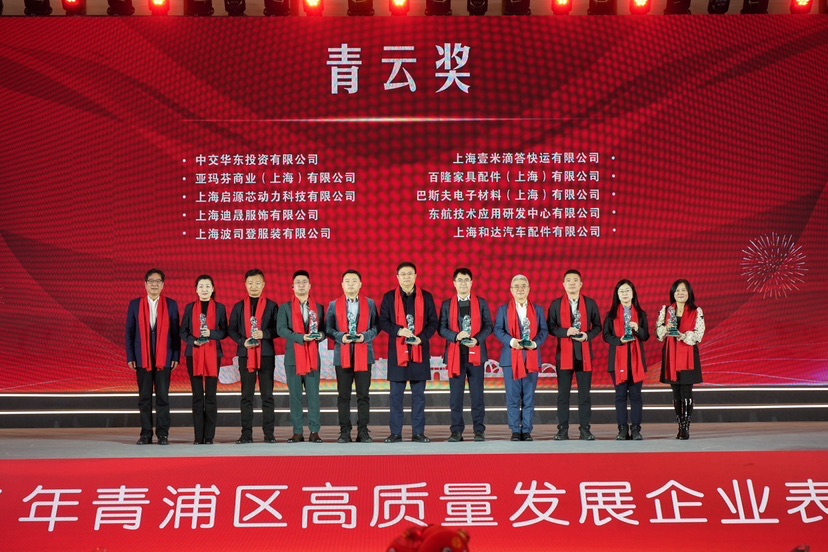 东方网记者王泳婷1月24日报道:24日上午,“展翼攀高逐梦新程奋楫争先”—2025年青浦区高质量发展企业表彰活动在国家会展中心(上海)举办。会上,青浦区对人才引进优秀企业、优秀平台企业、“制造业十强”“服务业十强”“高新技术十强”、“青云奖”“灯塔奖”企业代表进行了颁奖。