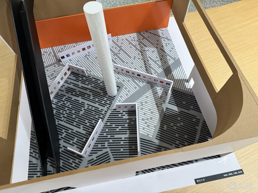 记者在七楼展览空间中发现了一组特别的展品,是上海视觉艺术学院会展设计与策划专业学生们为展览设计的不同方案模型。作为一门进行中的实践课,每年生肖艺术大展成为学生们全流程参与的实操对象,比如一个“灵蛇归巢”的设计模型就是五楼巳形LED灯箱展陈方式的雏形。有的方案尽管没有在这次展览中落地,但得到上海图书馆工作人员的高度肯定,有望成为其他展览布置的灵感。