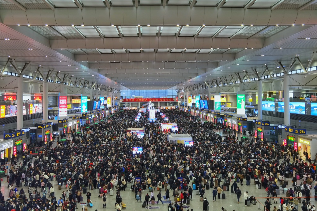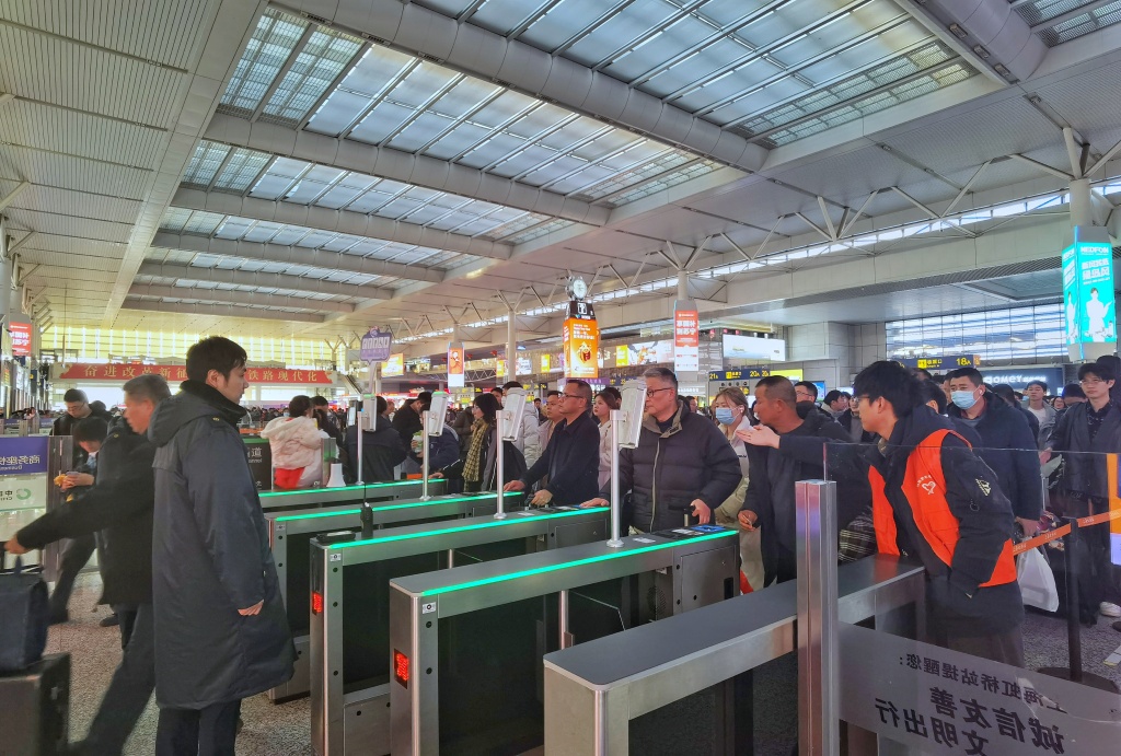 春运以来铁路上海站日均发送旅客近53万人次,今天预计77.8万人次