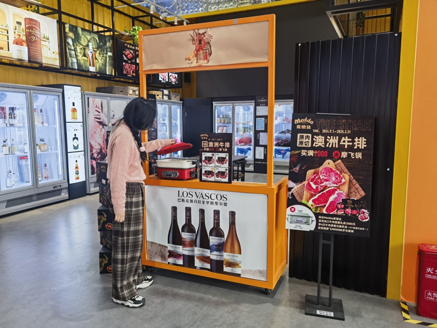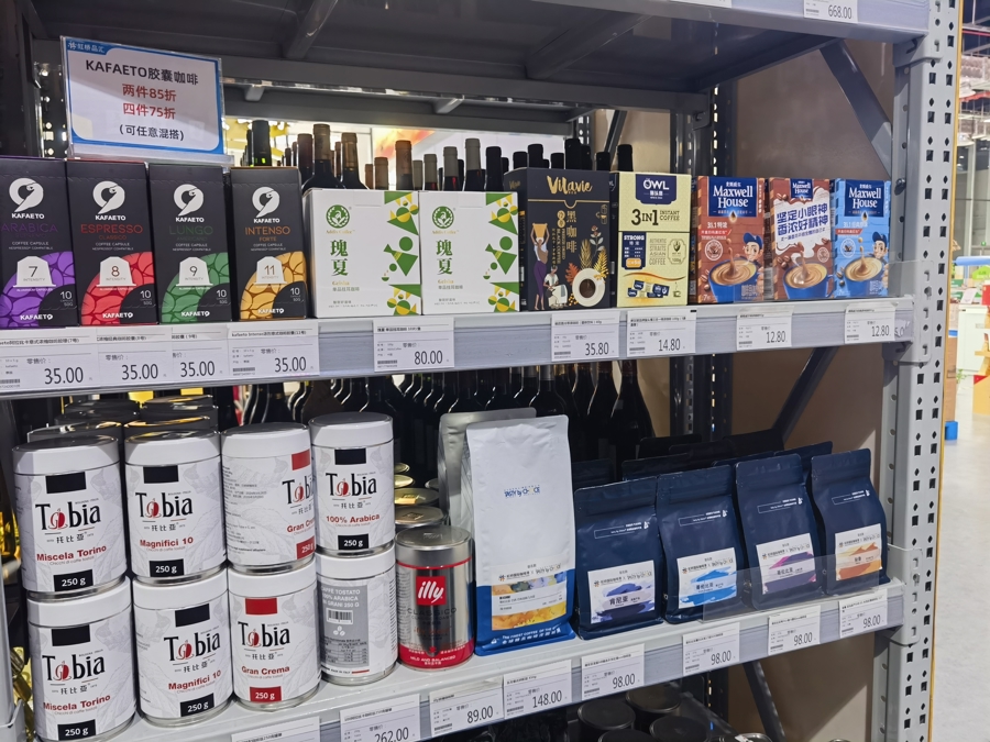 工作人员告诉记者,2025年1月20日-2月12日的活动期间,来自17个国家的醇香葡萄酒、14个国家的馥郁咖啡、12个国家的甜蜜糖巧、5个国家的香脆坚果以及4个国家的优质食用油等数千款进博好物优惠促销,最低5折,共贺新春。更有99元至299元的超值大礼包,性价比特别高。