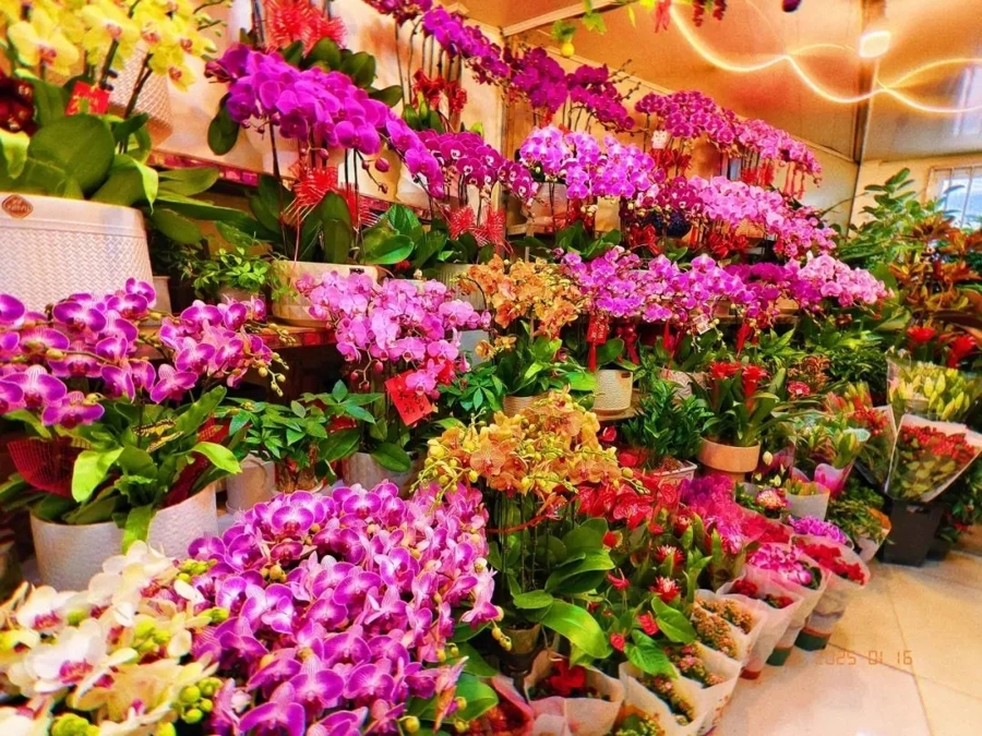 走进梅陇花鸟市场,满眼都是争奇斗艳的花卉,一派红红火火的喜庆氛围。这里有优雅从容的蝴蝶兰、雍容华贵的大花蕙兰、色彩斑斓的郁金香、硕果累累的北美冬青、幽香宜人的蜡梅等,吸引了不少市民前来选购。在市场扎根多年的张老板说:“现在正是购买年宵花的热门时节,蝴蝶兰造型美观,颜色鲜艳,有许多顾客咨询。”