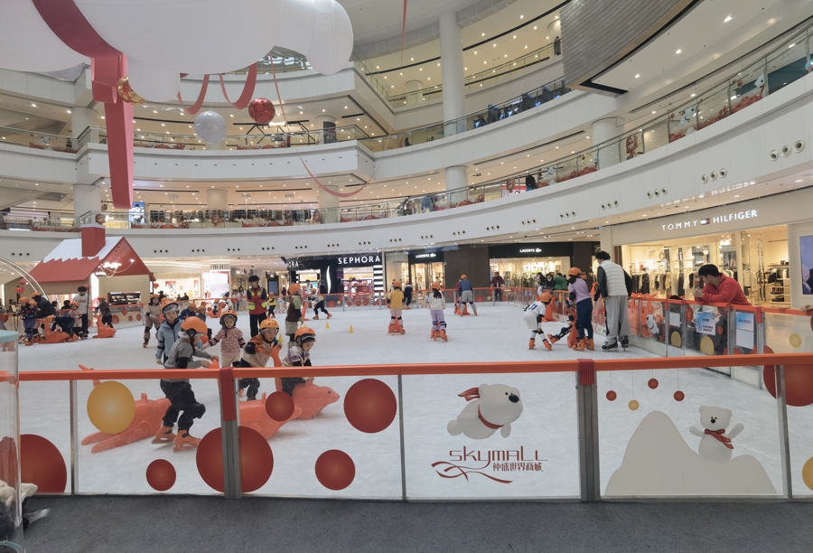 最近,在仲盛世界商城一楼中庭,一个新引进的200多平方米冰场让这里变得更加热闹起来,场中穿戴着溜冰装备的孩子们正穿梭往来,外围则满满坐着陪伴来的家长们。“去年12月1日正式引入后,立即呈火爆态势,上冰90分钟价格110元,每天上冰达到120-140人次,周末更是达到300-400人次,第一个月销售额就令人满意。”店长张先生告诉记者,他们还提前进行了线上促销,半个月就卖出了1万多张券。