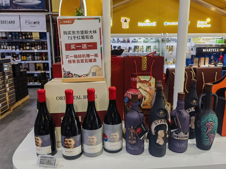“全球原产地一手直采,大多好物在外面很难买到,价格还便宜一半”——随着虹桥品汇的知名度越来越高,团购“进博年货”送亲友成为一种体面选择,这也是今年春节档销量大幅攀升的理由之一。工作人员指着一款法国原装进口红酒介绍说,“一箱有六瓶酒,只要409元,有客人一买就是十几、二十箱,有的客人则直接下单几十箱,让送货到家。”另一款产自格鲁吉亚的“斯大林红酒”也是爆款,平时每瓶售价688元,眼下“买一送一”,买一箱还送1瓶当地特色瓦罐酒。还有一款澳洲牛排礼包券也卖得特别好,2000元包括四组牛排套餐和一个价值899元的摩飞锅,一两周销售额就达50万元。