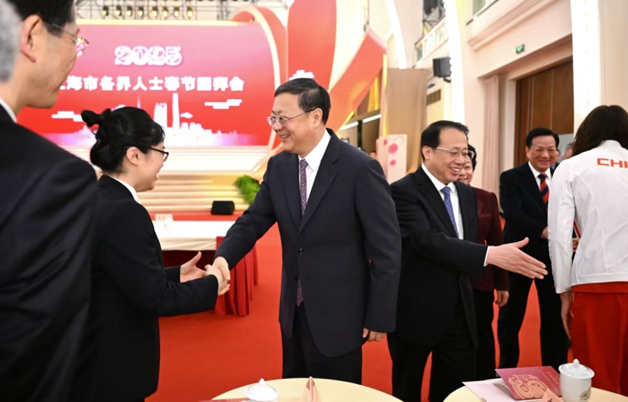 上海各界人士春节团拜会上,陈吉宁与各界嘉宾共祝伟大祖国时和岁丰繁荣昌盛