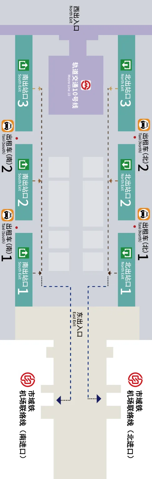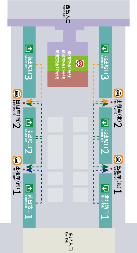 从南出站口3、北出站口3出来的旅客,可选择在出租车南2、出租车北2乘坐出租车。
