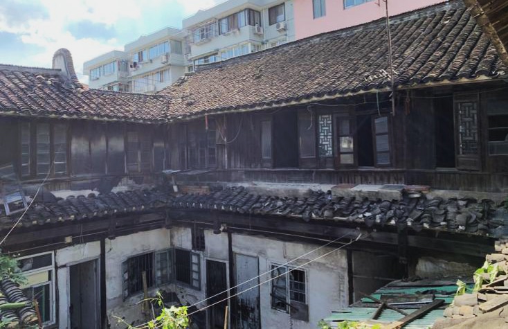 古建筑是历史的固态记忆,彰显着一座城市的文化底色。王敬铭住宅是嘉定老城现存典型的江南传统民居。整座宅院气势宏大,宅院以砖木结构为主。硬山屋面、青砖、粉墙、小青瓦覆顶,折起的屋顶、平直的院墙、凸起的观音兜,高低错落,轮廓线起伏多变,层次丰富。建筑坐北朝南沿中轴线对称,由南向北依次为轿厅、第二进前厅、第三进正厅、第四进后楼,除第四进为二层楼房外,其余为单层建筑。第三进与第四进均为“一正两厢式”布局。此前,王敬铭住宅长期处于空置状态,仅第一进住有居民。房屋年久失修,住宅第一、二、三进的木梁、木楼板、搁栅、木柱等杉木构件均有不同程度开裂、糟朽等损伤。此外,由于居民分户,建筑还存在墙体隔断混乱,私拉电线等问题。