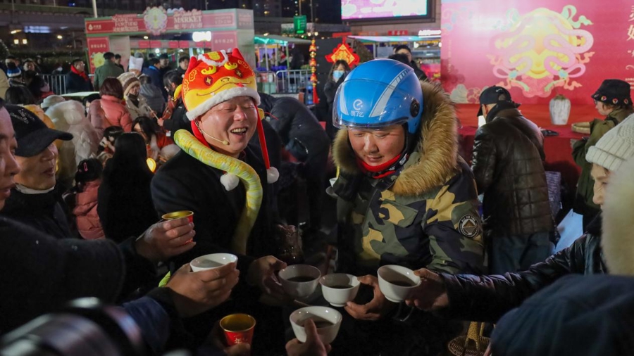 1月27日傍晚,南广场上热闹非凡,一场别开生面的小年夜民俗活动在此举行。现场炒花生、炸春卷、打年糕、蒸包子、喝鱼汤、品黄酒......大家共同庆祝小年夜的团圆时光,感受传统文化的独特魅力。