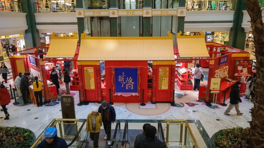 除了民俗活动外,三星堆和“上新了故宫”两大知名IP也已登陆上海环球港,带来了视觉与文化的双重盛宴。1月25日,“苏醒的古蜀”三星堆沉浸式光影艺术展在四楼环球展厅开幕。作为该系列的上海首发,独家呈现了三星堆主题文明展和古蜀沉浸式光影艺术展两个展区。游客不仅可以在其中欣赏到三星堆文化的珍贵工艺品,还能带上VR眼睛沉浸式探索古蜀,近距离感受古代文明的独特魅力。同时,“上新了故宫”新年主题快闪“蛇转乾坤”也在花园厅火热进行中。