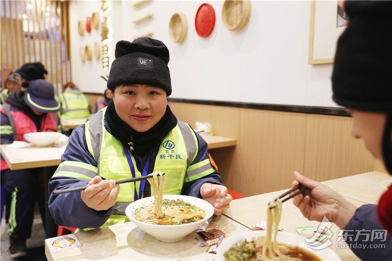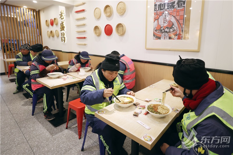 请环卫工人吃碗热腾腾的新年团圆面,上海春节环卫“不打烊”
