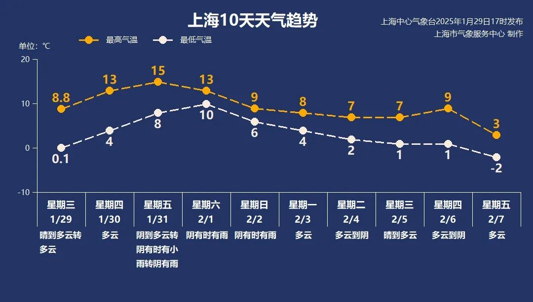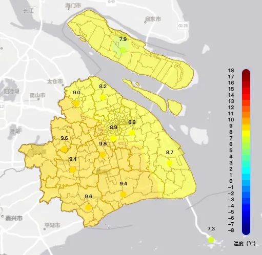 大年初一(1月29日),上海最高气温普遍来到7~10℃。 本文均为“上海天气发布”微信公众号 图