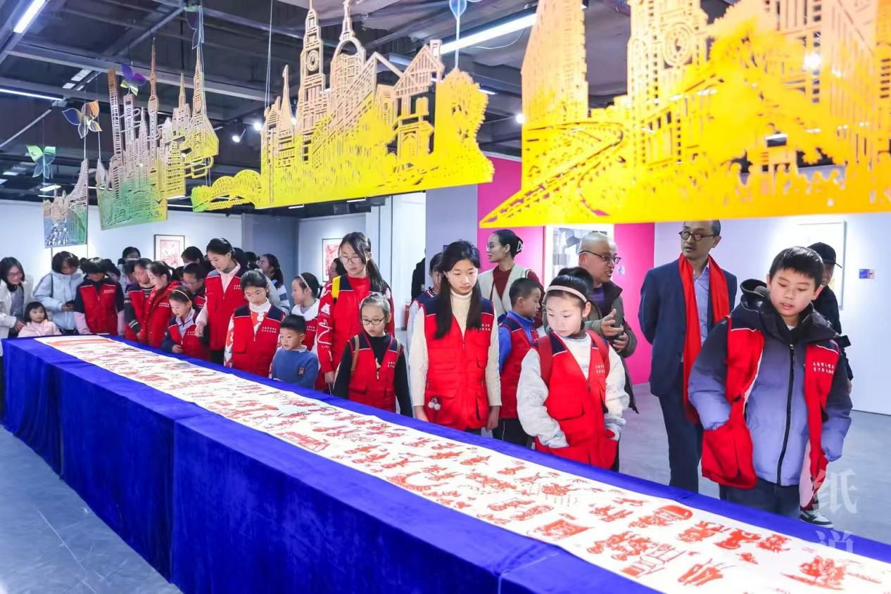 在浦东新区,GM美术馆的“纸说”——纸媒介融艺术展为市民献上了一场纸的盛宴。展览共展出了91件以纸为媒介的艺术品,包括剪纸、纸塑、纸雕、撕纸、凿纸等多种形式的作品。特别是十米巨幅彩色纸艺装置《百年上海》,以其独特的创意和精湛的工艺,成为了展览中最受市民喜爱的合影打卡点之一。这件作品以海派剪纸非遗传承人李守白的经典剪纸作品为基础,通过立体雕刻和光影折射,营造出层层叠叠、错落有致的效果,令人叹为观止。