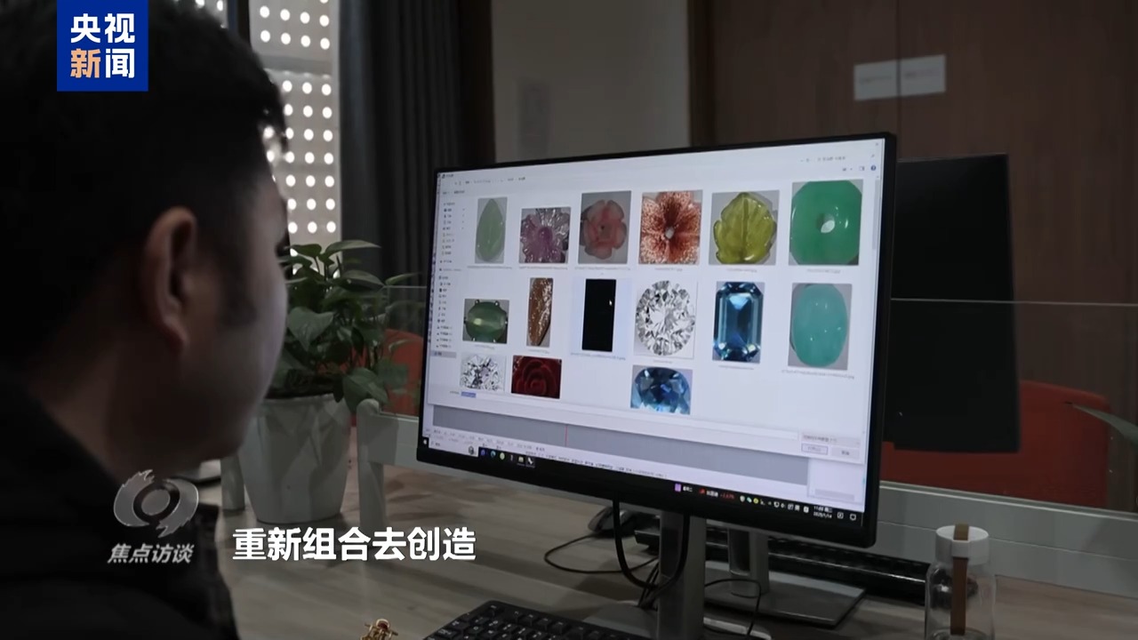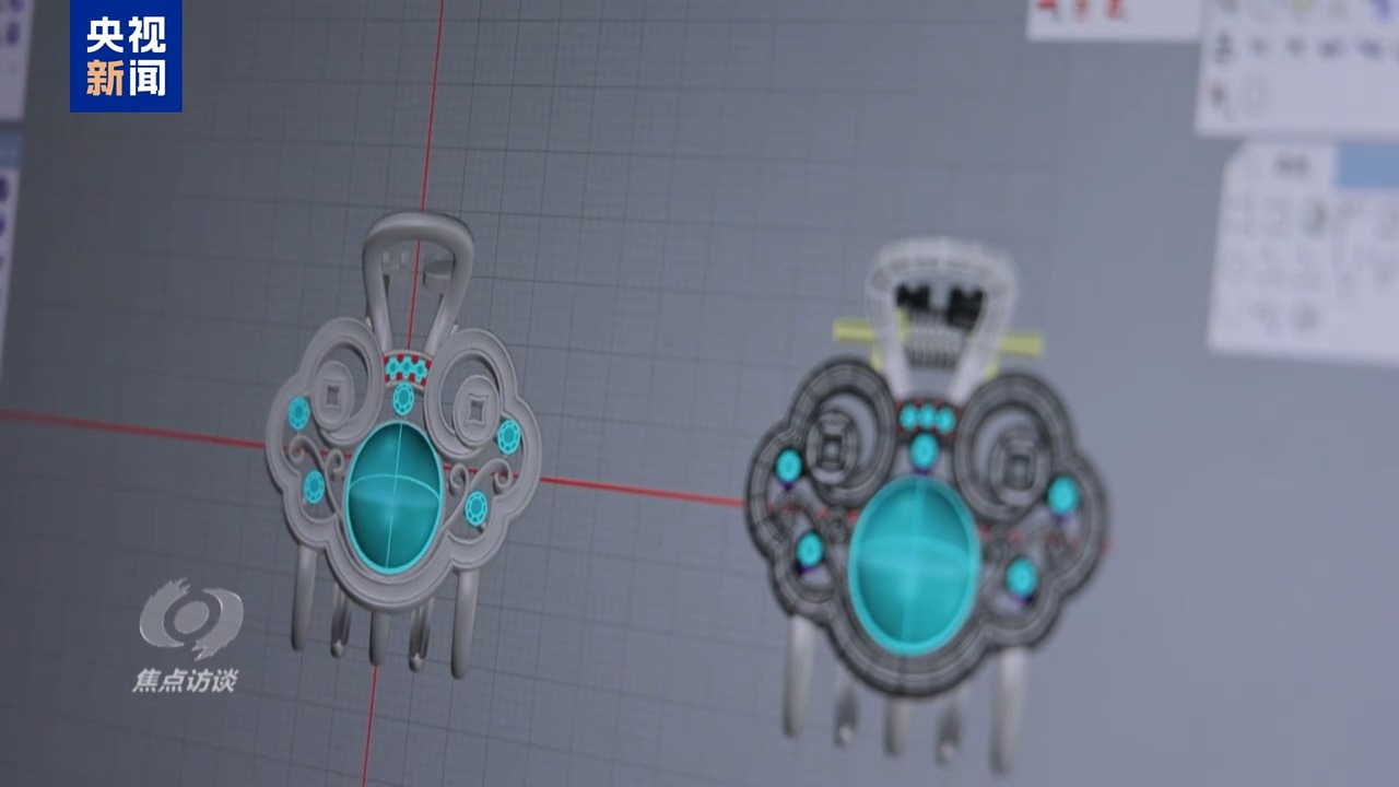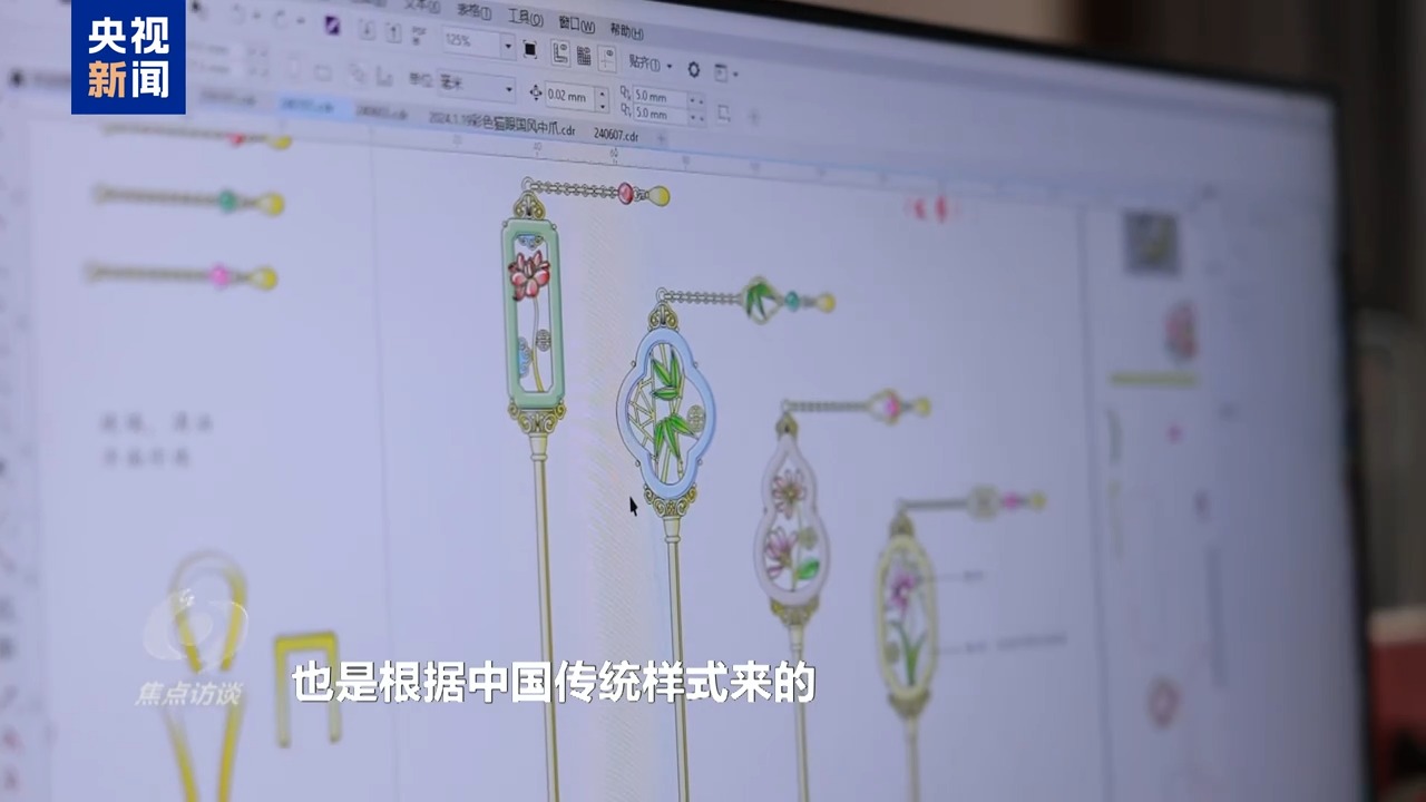 义乌某饰品公司产品设计师周亮:梅兰竹菊有传统的一些寓意,然后这些图案的外形,也是根据中国传统样式来的。材料方面,我主要是想体现中国的那种翡翠的感觉。