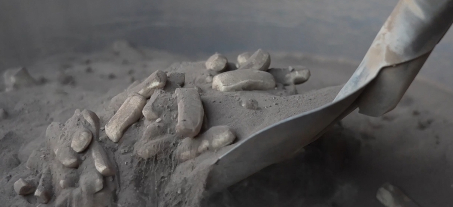 太行山深处山崖上的无污染黄土,久经阳光曝晒,干燥细腻。新鲜收集的黄土,经过压制、捶打、过筛、加热等工序,混以面粉、鸡蛋等制成的生指一起翻炒,散发出独有的诱人香气。生指在黄土的包裹中,均匀受热,逐渐变干、变脆、膨胀,兼具口感的同时,吸收了土中的矿物质和微量元素,形成了滋养脾胃,帮助消化的食效。