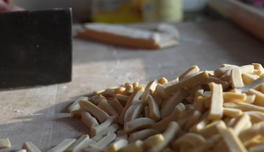 在山西武乡,有一种流传千年的传统面食,因外形酷似手指,被称为“武乡炒指”。区别于一般小吃,制作“武乡炒指”有一味特殊原料——黄土。