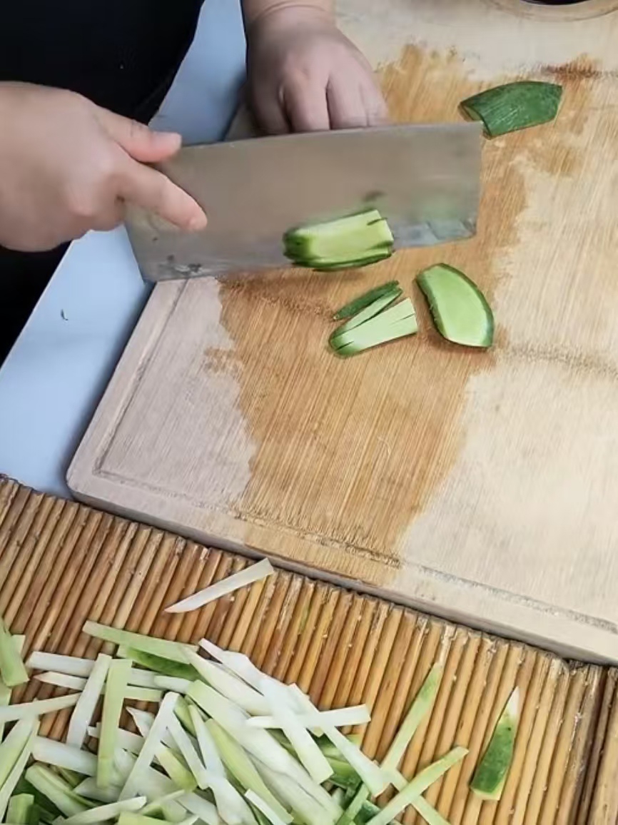 在互联网时代,红姐近年来通过网络平台,将诸城的美食文化传播到更远的地方。视频中的她正清洗着制作皮根菜的材料——青萝卜。每年秋冬季节萝卜大丰收,红姐就会和家人一起挑选饱满的青萝卜,切成条后放在太阳下晾晒。“晒萝卜条的时候,每天都得翻几遍才能晒得均匀。”晒好的萝卜用凉白开浸泡,再拌上调料,清爽可口。