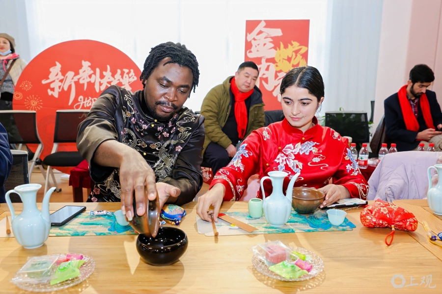 大年初五,“外国友人看杨浦”文化体验活动举行。在祥和喜庆的氛围中,一群外国友人现场感受中国古典建筑的魅力,穿上中国传统服饰体验武术的精妙,品一杯温润的中国茶,吃一口甘甜的中国点心,拿起笔墨写下满满的祝福……