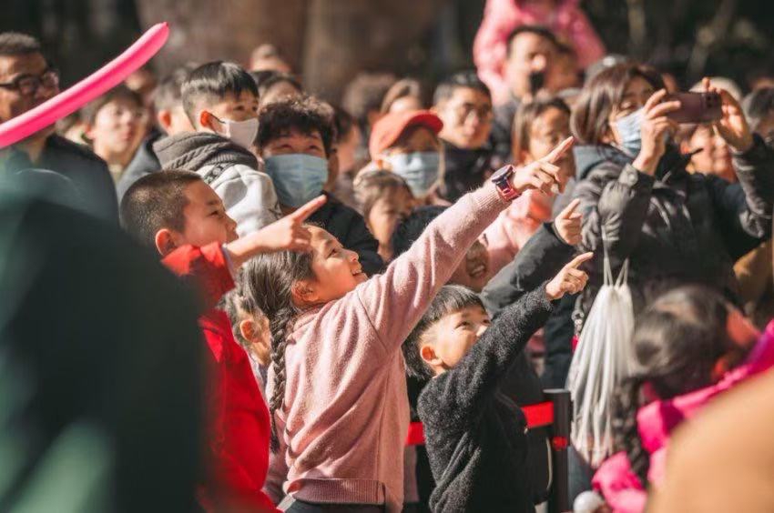 踏入上海千古情景区,仿佛开启新春魔盒。沪剧声、吆喝声、嬉笑声,声声入耳,交织成海派文化的动人乐章;皮影戏、木偶戏、拉洋片,场场潮趣,演绎着传统与现代的奇妙碰撞;火壶、火流星、炭火舞呈现一场真材实料的火焰狂欢,点燃新春的激情与浪漫;鱼灯、舞龙、舞狮演绎行走的传承,让非遗与潮流文化相融,解锁不一样的文化之旅。