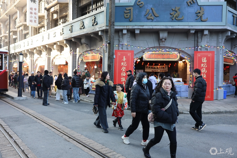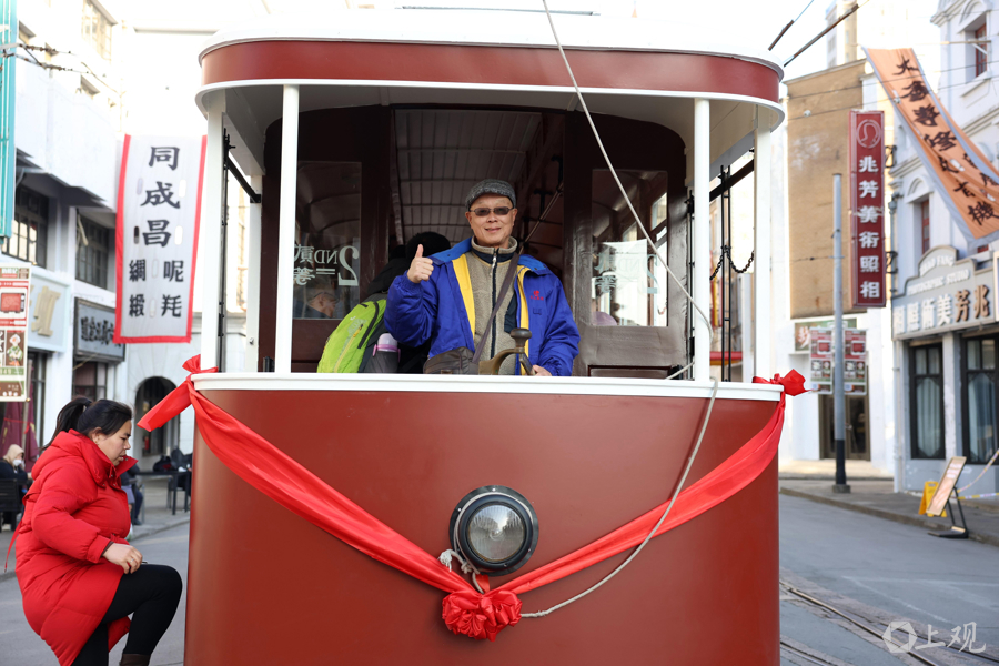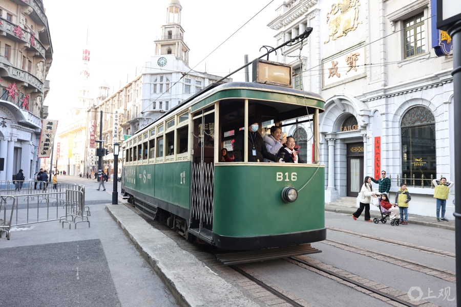 游客乘坐有轨电车环游老上海“十里洋场”,极具穿越感,仿佛自己也成剧中人。