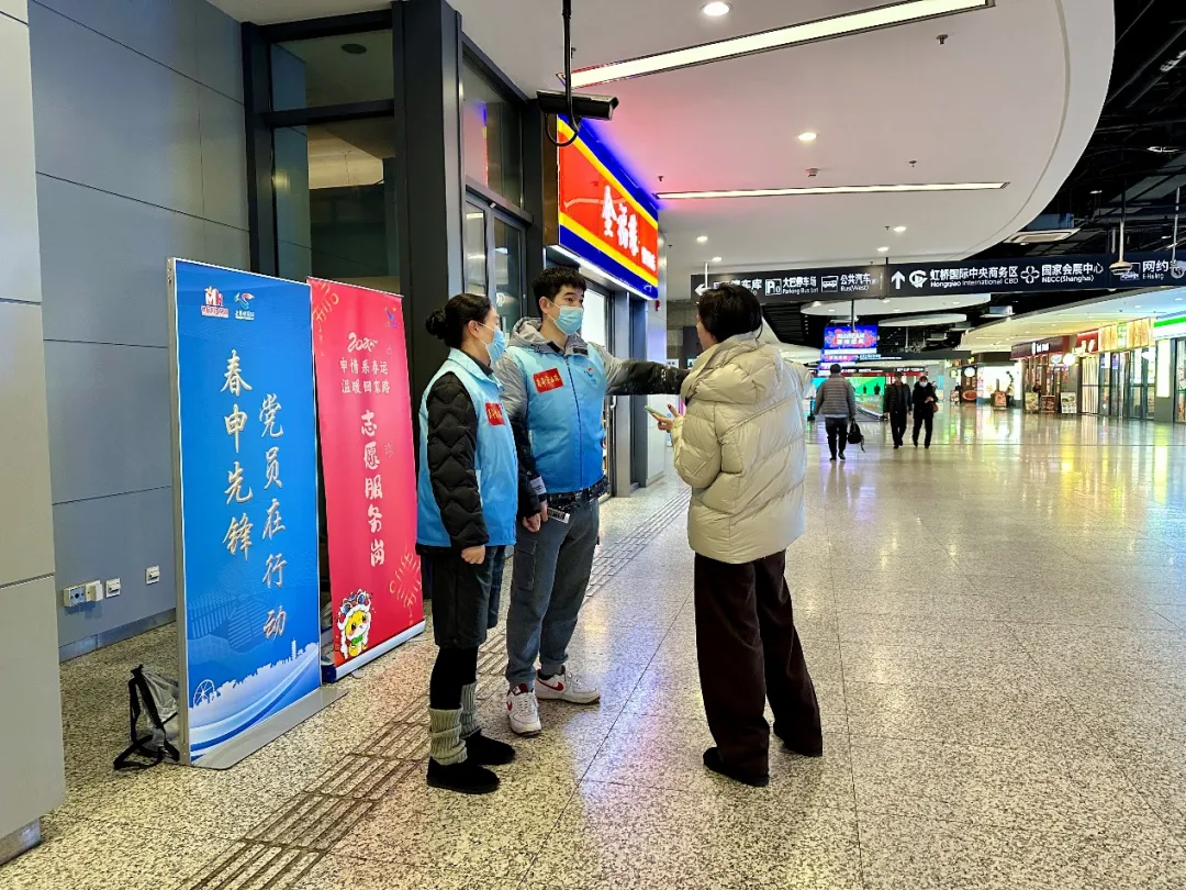 根据铁路部门预测,2025年春运期间虹桥火车站预计到发旅客1706万人次。为持续做好春运期间虹桥枢纽交通保障工作,闵行区组织1500名机关、街镇志愿者通宵增援,分布在现场6个重要点位,提供各类咨询、指引服务,直至2月8日。