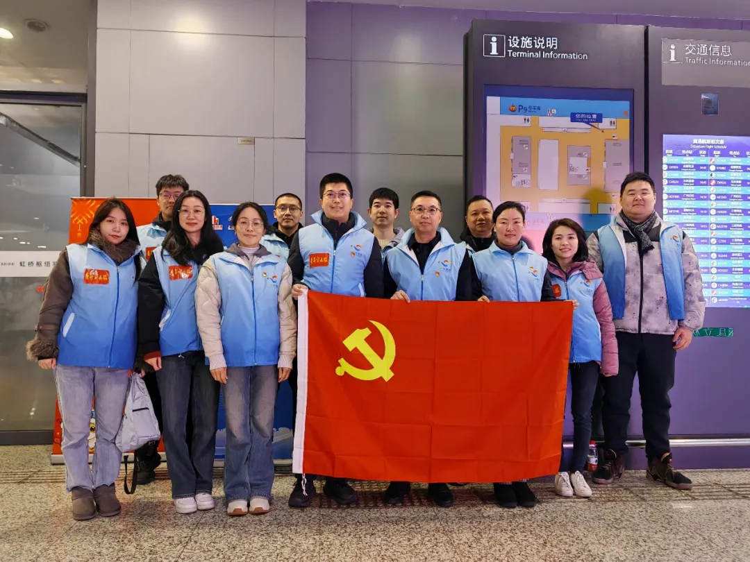大年初五,已经进入了返程高峰,区规划和自然资源局组成了一支由党员干部、入党积极分子和共青团员为主的志愿者队伍,12名队员于2月2日一早到达虹桥交通枢纽,身披蓝色志愿者马甲,用温暖的笑脸欢送离沪的游客、迎接归程的市民。