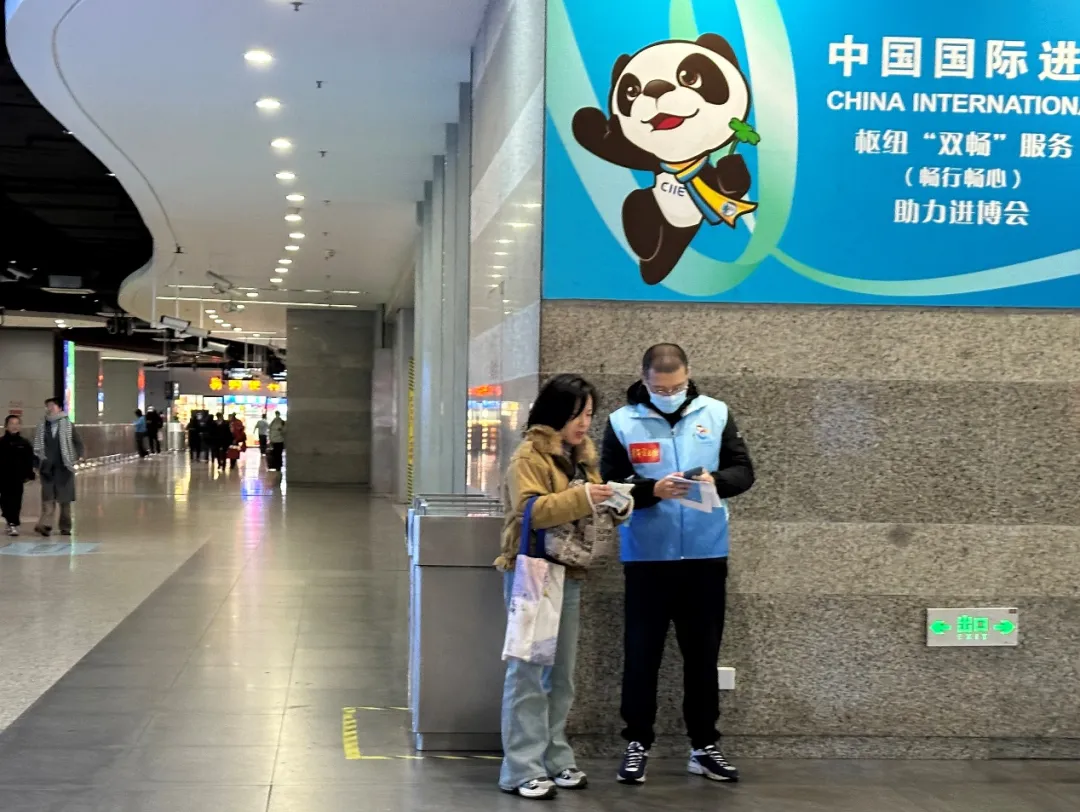 早上,邓家靖准时到达志愿者服务站,穿上醒目的志愿者马甲,为旅客提供指引服务,帮助他们快速找到检票口、地铁站、公交站等。志愿服务让邓家靖深刻体会到,虹桥枢纽不仅是交通的枢纽,更是人与人之间温暖的连接点。每一位旅客的背后,都有一个关于团圆、梦想或奋斗的故事。