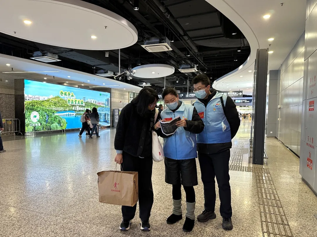 在服务过程中,旅客们最常询问的问题包括:“最近的高铁、火车站入口在哪里?”“虹桥西交通枢纽怎么走?”“网约车从哪里可以乘?”……而郭美玲早已做好了功课,提前熟悉了周边交通环境,现场解答也能够熟练应对。