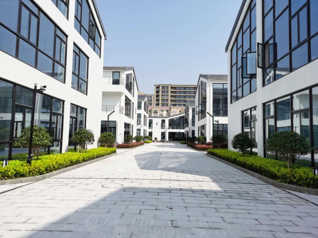 外立面重新打造后,新中式江南水乡风格的园区形象让人赏心悦目。道路宽阔,中央广场和园林式的小庭院设置了休闲座椅,让企业白领能够坐下来休息放松、聚起来交流互通。