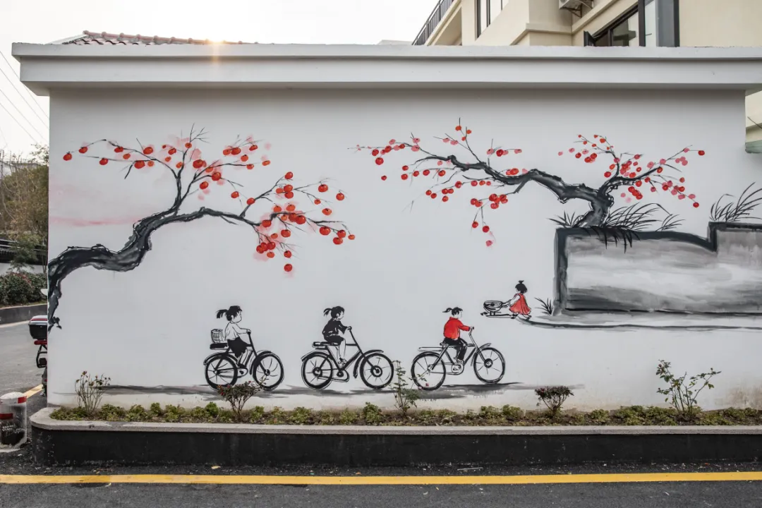 为了扮靓村庄,远景村秉承罗店“春有花神秋有画,夏有龙船冬有灯”的四季文化,在村庄中引入罗店本地民俗画,走在远景巷陌,墙上随处可见一幅幅鲜活生动的罗店民俗画,记录着蒸年糕、划龙船、纱纺织布、灶台年画等民俗传统,勾起乡愁与民风的记忆。这项具有鲜明地域特征和浓郁生活气息的“宝山非遗”,既展现着美丽乡村的风貌,也是远景村的“流量密码”。