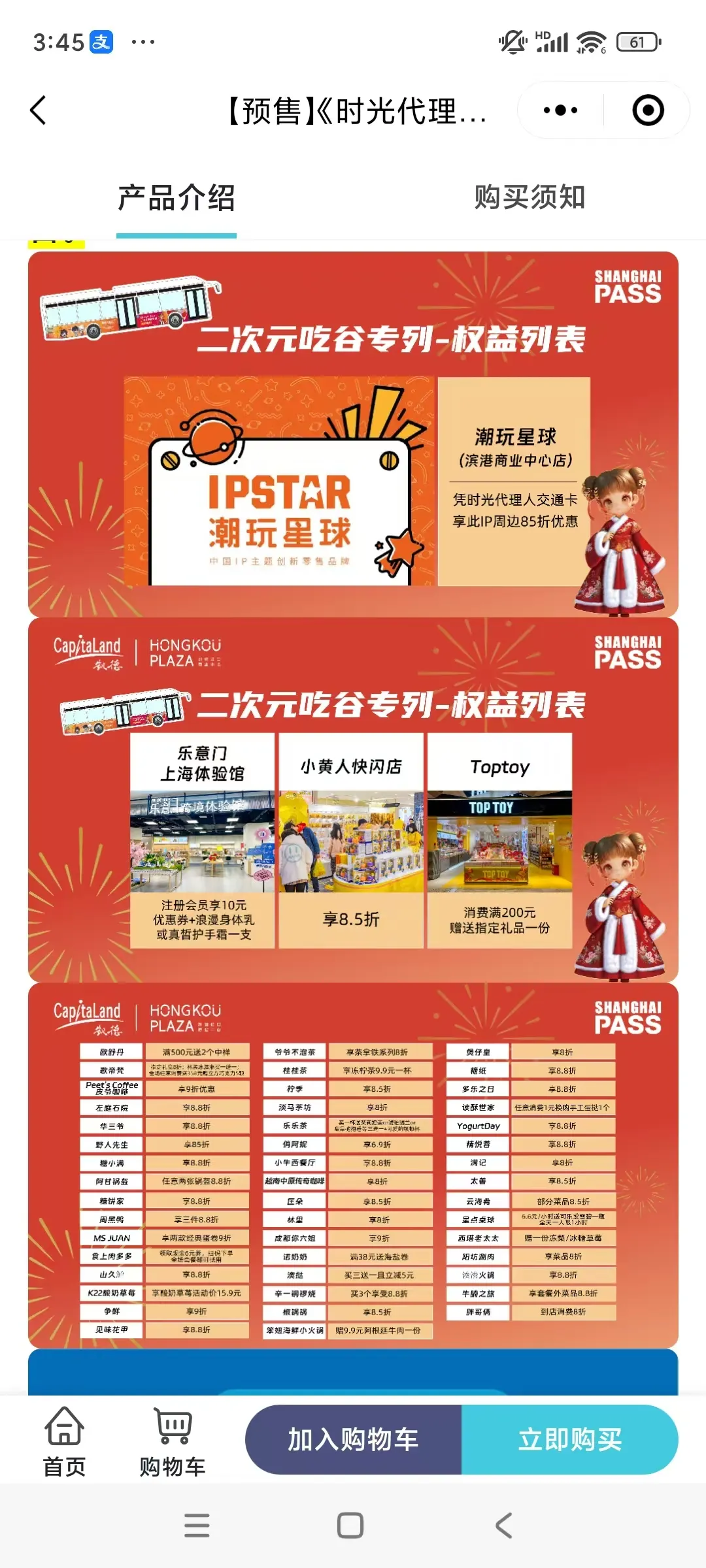 向下翻到“产品介绍”详细介绍了持此卡乘坐“吃谷”专列在各个站点可以享受的权益↓ ↓ ↓