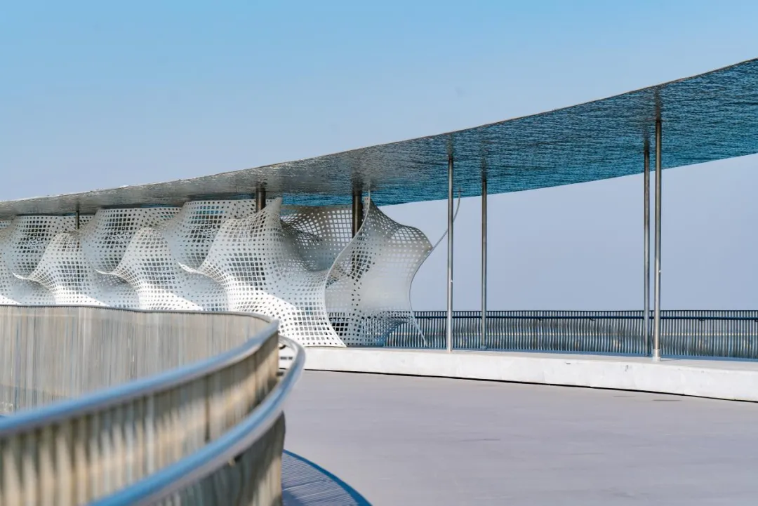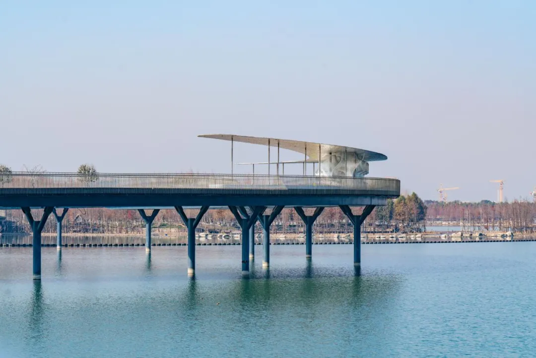 位于元荡一期的元荡桥,蜿蜒曲折,横跨江苏吴江区和上海青浦区,桥头的白色字体和桥上的白色织网型建筑,简直是拍照胜地,出片效果杠杠的。在元荡二期的渔歌驿前,可以眺望到沪苏湖高铁线;元荡三期,以“十二金钗”为设计理念,巧妙融合了水乡特色与现代建筑元素,尽显江南风韵。