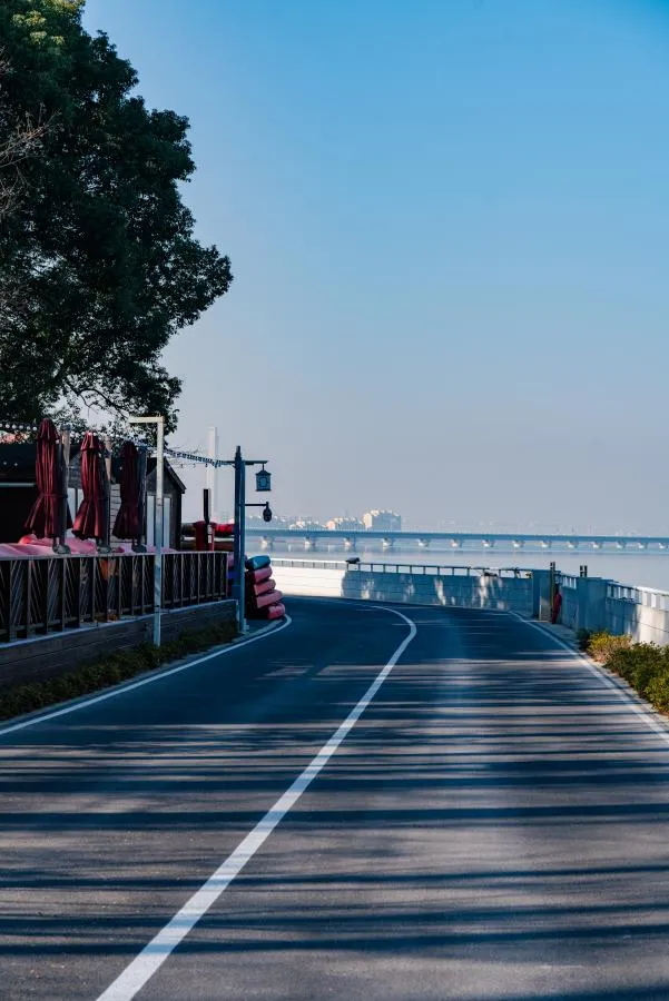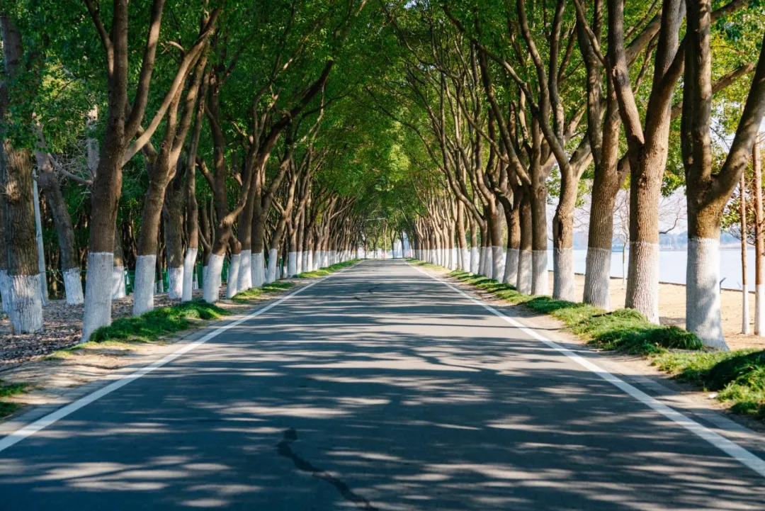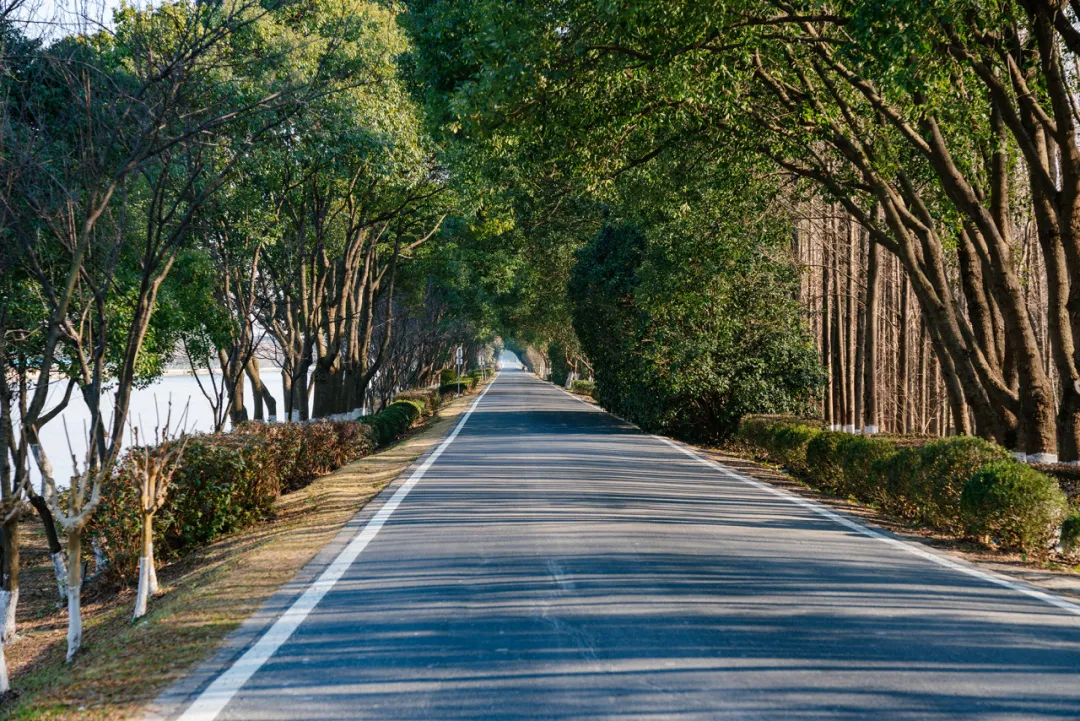 骑行于林荫道上,全程几乎被茂密的林木覆盖,车辆稀少,骑行体验极为舒适。在晴朗的天气里,穿梭于树影之间,一边是波光粼粼的太浦河,一边是林荫道的斑驳光影,令人心旷神怡,仿佛身心瞬间得以舒展。
