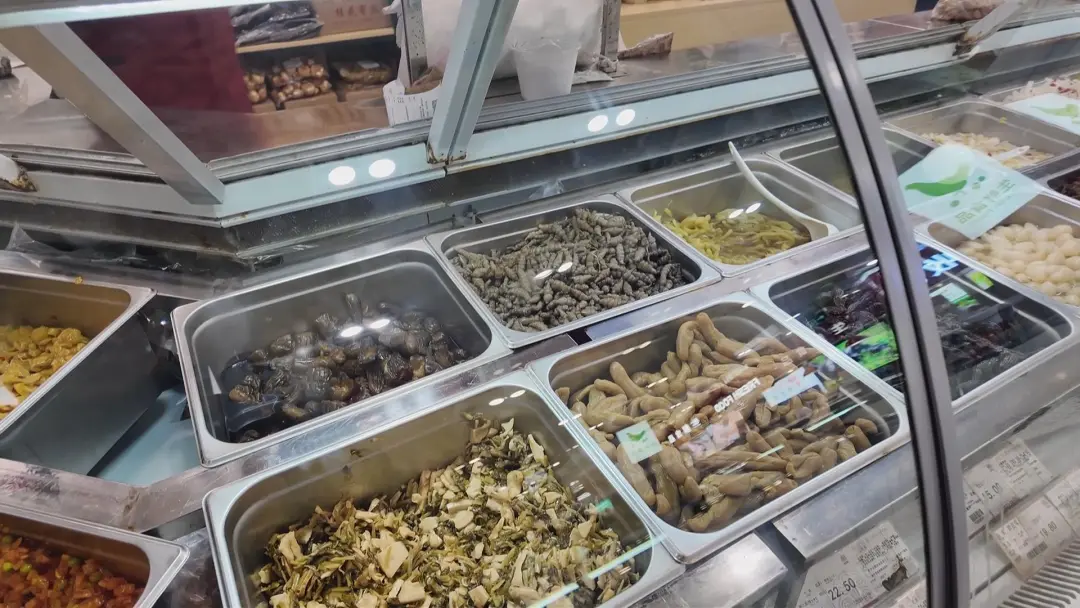 2月3日上午,记者走进第一食品商店,一股酱菜的醇香扑鼻而来。店内货架上,各种酱菜、泡菜琳琅满目,种类繁多,吸引了众多顾客前来挑选。从传统经典的萝卜干、酱黄瓜,到新颖独特的泡椒、韩式辣白菜,应有尽有。