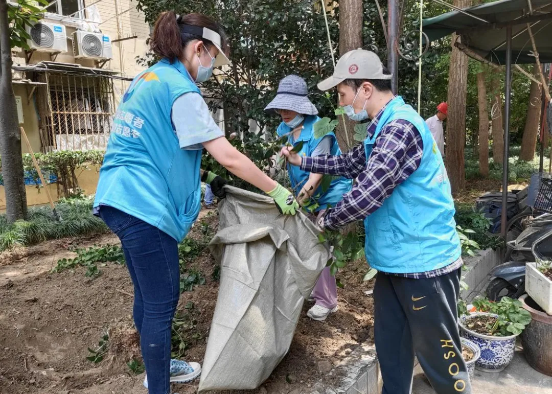 有了设计稿的指引,居委、物业等多元力量热情投入准备工作,制定施工方案,落实施工人员,选购植物等等。准备工作就绪后,社区的热心居民与志愿者携手合作,他们挥汗如雨,翻土、堆石、种花,共同投入到这片“小天地”的改造工作中。