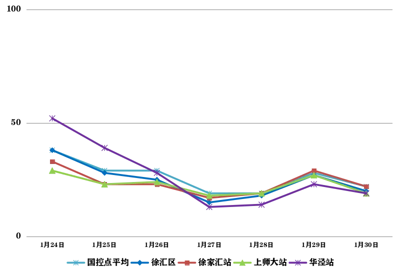 2025年1月24日—1月30日,徐汇区大气环境质量报告如下所示: