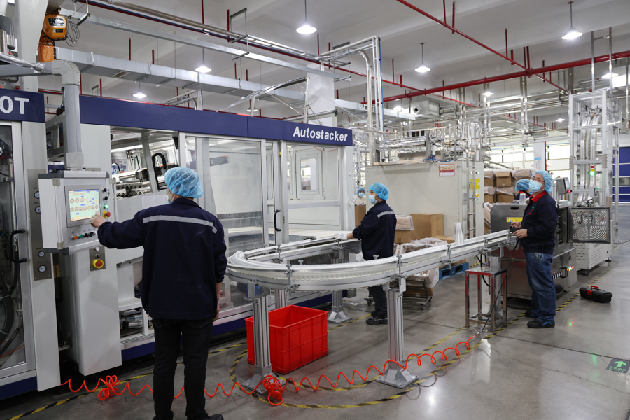 上海佳田药用包装有限公司的车间内,智能化生产线马力全开