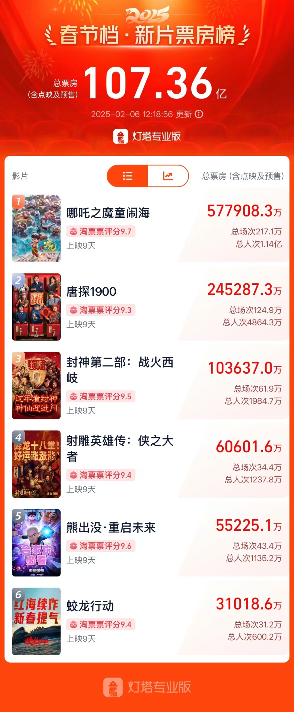 突破57.79亿元!《哪吒之魔童闹海》登顶中国影史票房榜