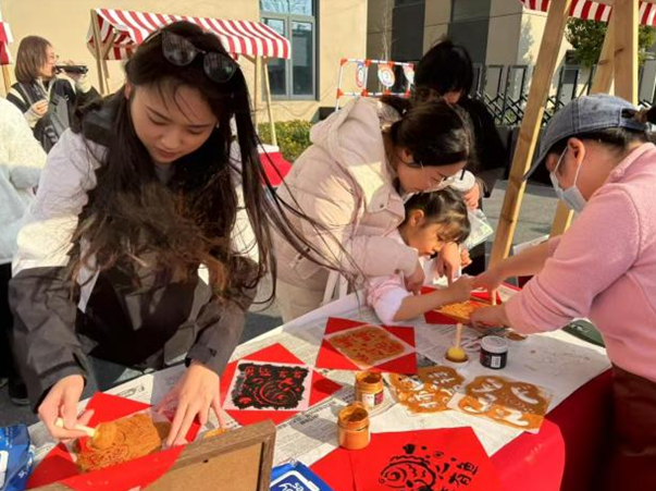 嘉定璟瑞社区,是本市“新时代城市建设者管理者之家”优秀示范项目。在沪宜路党支部的指导下,项目精心策划并举办了一场别开生面、热热闹闹的新春市集活动。活动现场,“非遗传承,福字迎新”手工拓印活动吸引不少住户。工作人员介绍了拓印历史和文化内涵,现场示范“福”字拓印步骤,大家在老师的指导下,拿起工具蘸墨拓印出圆润饱满的“福”字。