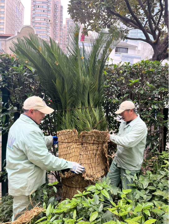 绿化人员开展防寒防冻绿化养护。上海市绿化市容局 图