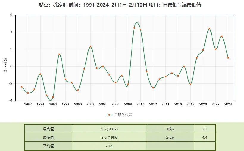 上海市气象服务中心称,受强冷空气影响,今天早晨,上海最低气温在零下7℃到零下4℃之间,徐家汇站最低气温零下4.2℃,郊区中崇明零下6.1℃为最低,金山和宝山零下5.3℃次之。徐家汇站最低气温创今冬新低,并成为近35年来2月同期最低气温。