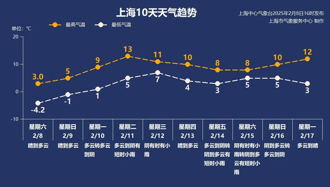 今天(2月8日),上海徐家汇站最低气温零下4.2℃,最高气温3.0℃。这不仅是上海今冬最冷的白天,也创下近35年来2月同期最低气温。9日气温依旧较低,11日起申城将开始阴雨模式。