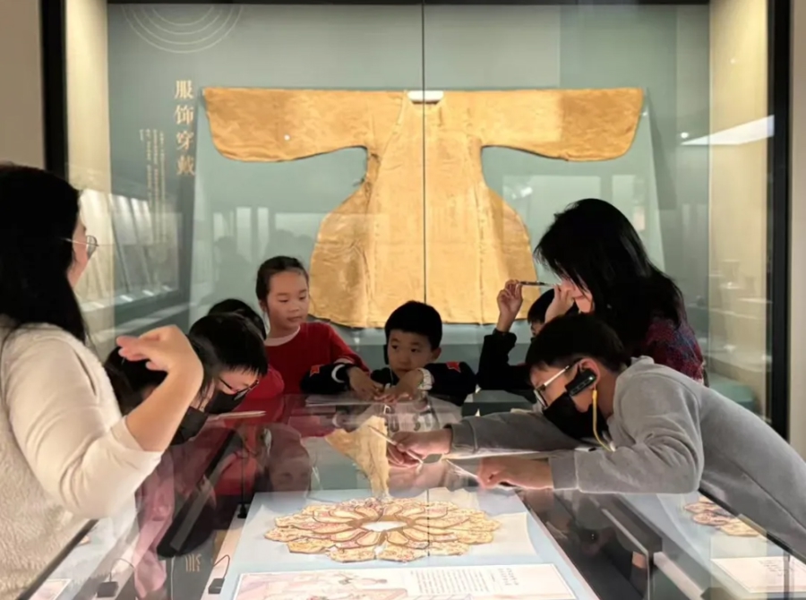 红楼梦中大观园长什么样的?如果穿越进红楼画册,跟着刘姥姥进荣国府会发生什么故事?和林黛玉、薛宝钗学写诗,结诗社是一种什么体验?本周,随特展举办的一日营在寒假期间举办,四大主题“红楼人物”、“红楼宴饮”、“红楼园林”、“红楼非遗”结合特展导览、展厅剧本游、非遗手作等多项体验,把亲子家庭吸引进入了红楼和“非遗”的世界。观众可以以一步一景的“游园”方式,完整近赏这部红楼梦图册,并参观“红楼梦时代”的服饰织品、文房陈设、博古杂项等相关文物。