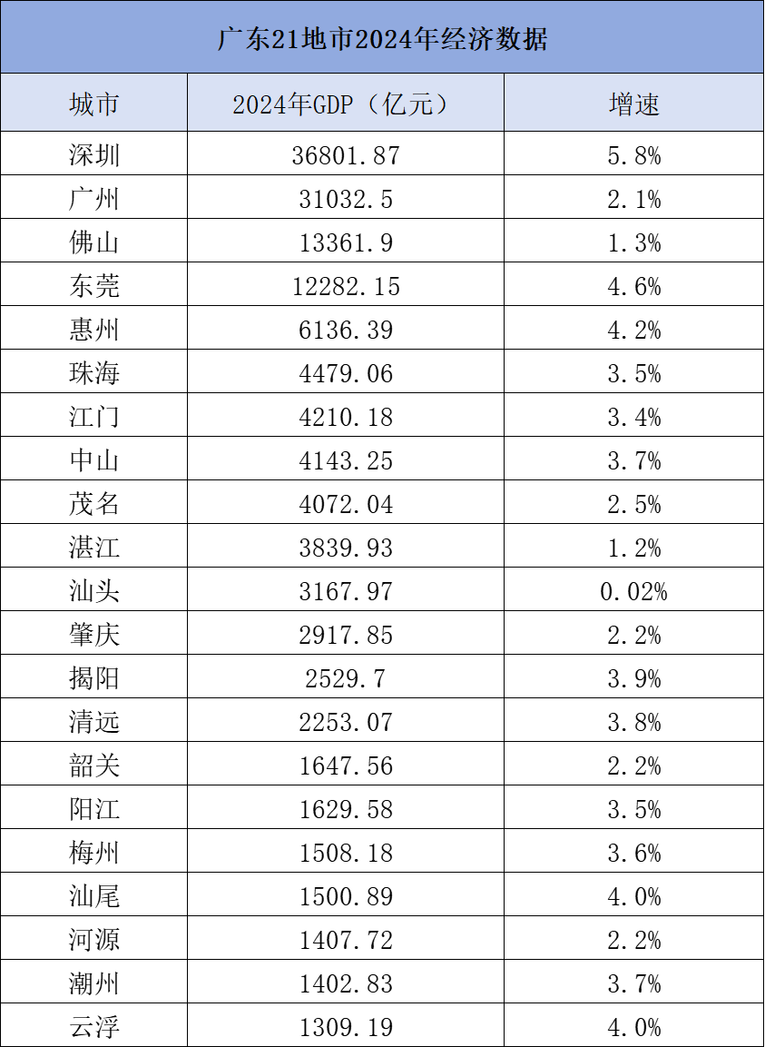 广东21地市GDP出炉:10城增速高于全省水平,深圳领跑
